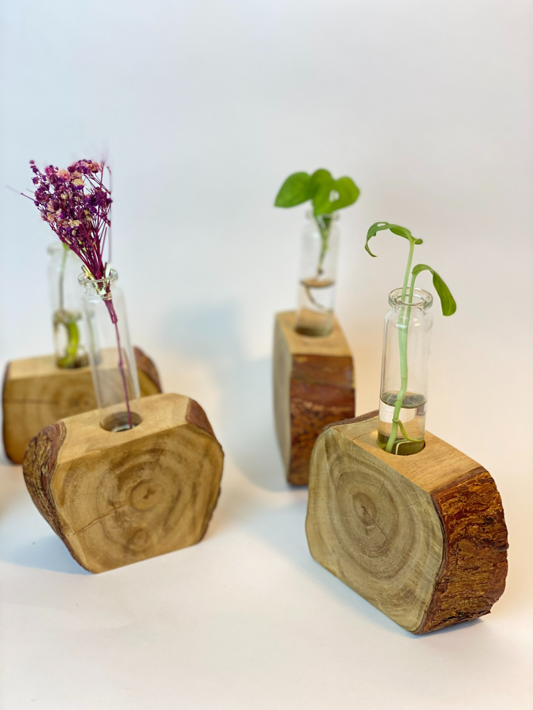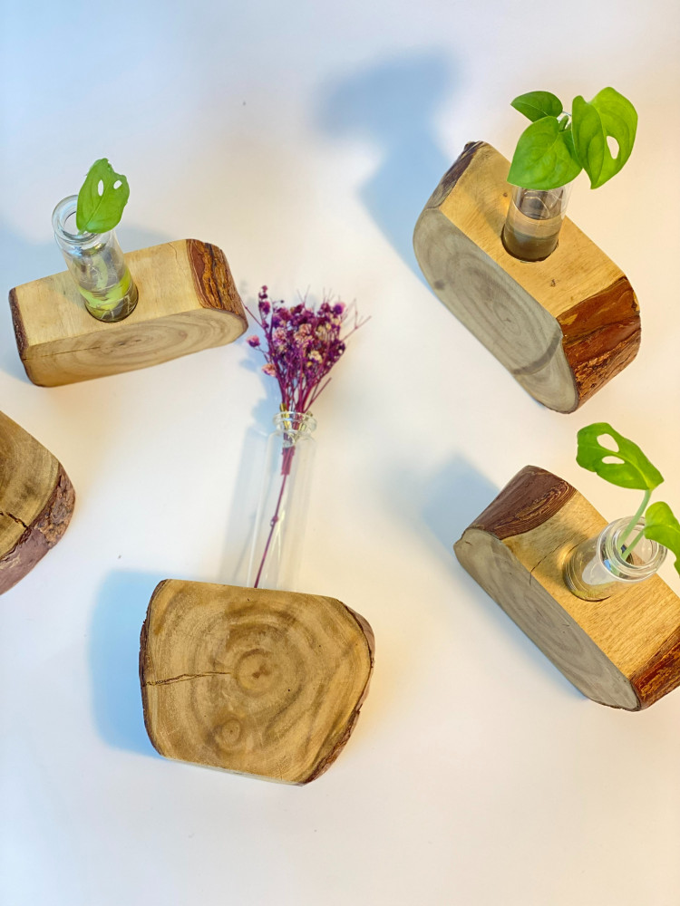 حامل انبوب نبات مفرغ من الداخل من خشب شجرة النيم